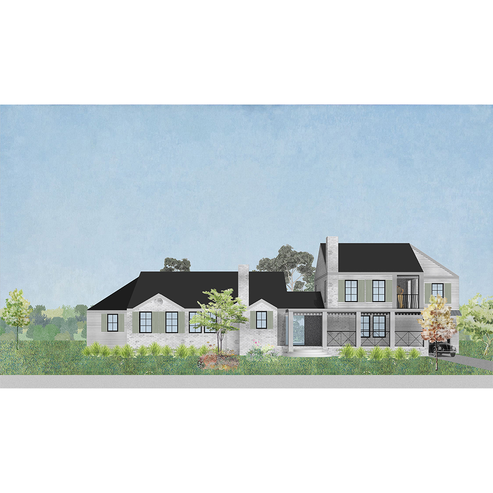 Open courtyard house situated in a forested coastal isalnd. The porches around the courtyard offer a gathering place for this three generation family.
